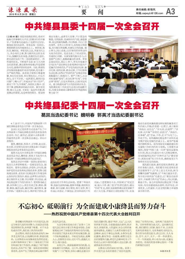 中共绛县纪委十四届一次全会召开 葛凯当选纪委书记 魏明春 郭英才当选纪委副书记