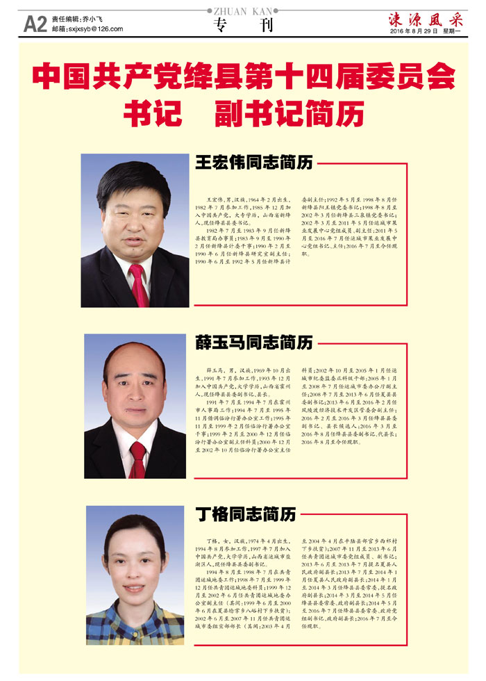 中国共产党绛县第十四届委员会-书记 副书记简历