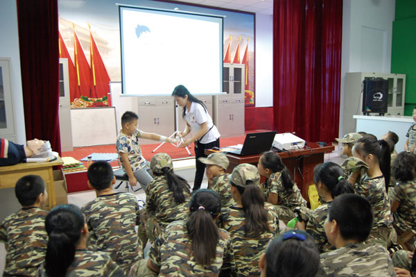 本报讯 9月3日,县红十字会工作人员为绛县首届“少年科技军事训练营”的48名小营员们进行了应急救护培训。