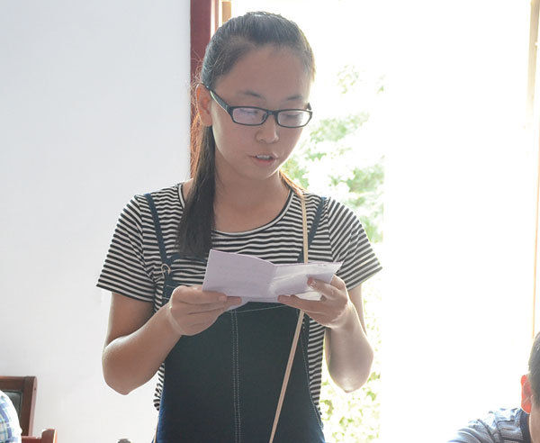 受助学生代表杨明慧发言。
