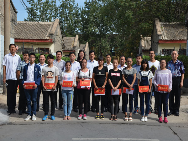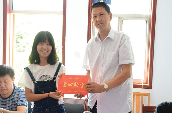 山西恒达联合药业有限公司董事长郭联合向受助大学生捐助助学金。