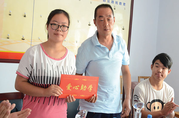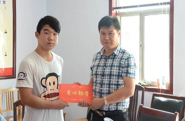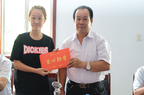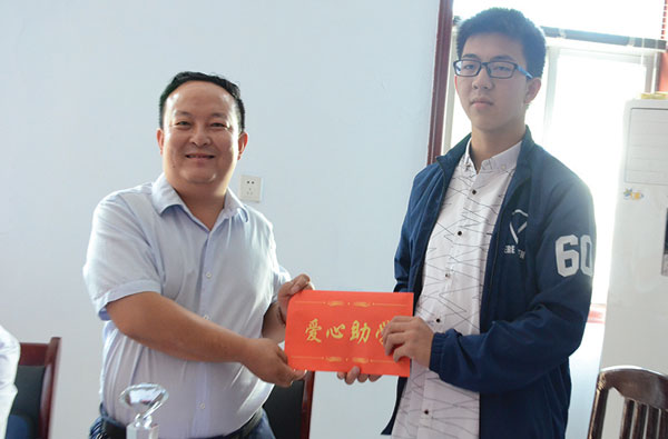 绛县工商联常委、绛县楠华汽贸董事长柴茂林向受助大学生捐助助学金。