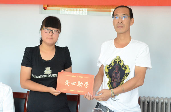 绛县金牌艺术学校向受助大学生捐助助学金。