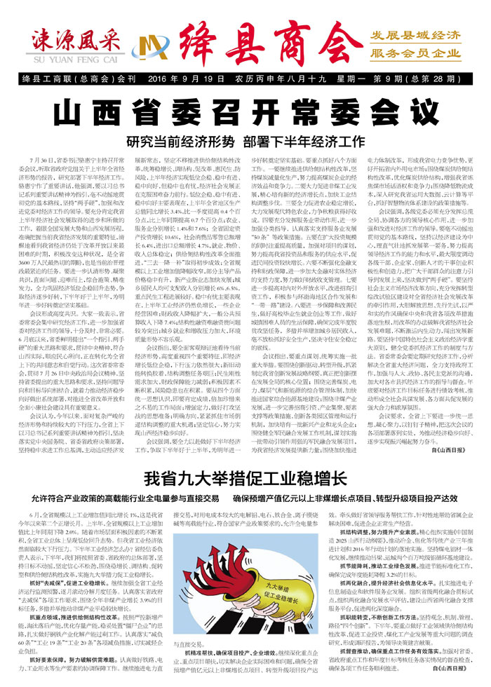2016年9月19日 农历丙申年八月十九 星期一 第9期(总第28期)