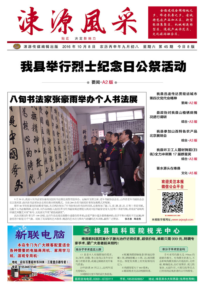 《涑源风采》贴近,决定影响力 涑源传媒编辑出版 微信:suyuanfengcai 邮箱:sxjxsyb@126.com 电话:6523423
