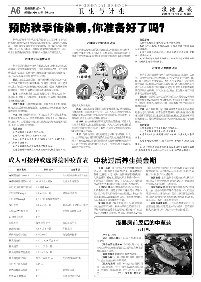 预防秋季传染病,你准备好了吗?