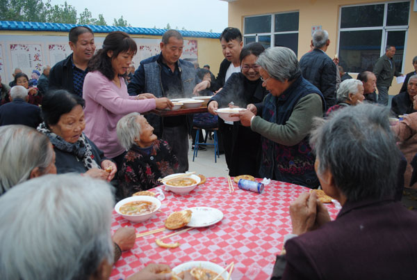 10月9日,安峪镇东三涧村一年一度的九九重阳节敬老大会如期举行,全村65岁以上的老年人欢聚在该村新落成的日间照料中心,共度重阳节,进一步弘扬尊老敬老、爱老助老的优良传统。村里为老年人安排了丰盛的水果,精彩的节目,还有精心熬制的热气腾腾的暖心羊汤,现场洋溢着浓浓的敬老情。