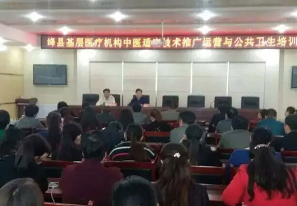 此次培训邀请陕西秦东医疗器械公司张定军总经理就基层医疗机构中医适宜技术推广与运营进行了认真讲解。全县各乡镇卫生院院长、分管院长、中医大夫、公卫人员近二百人参加了培训。张经理以简洁生动的语言和丰富的临床医学经验把常用的中医适宜技术从概念、操作程序、适应症、禁忌症、注意事项、临床疗效分别进行了详细的阐述。