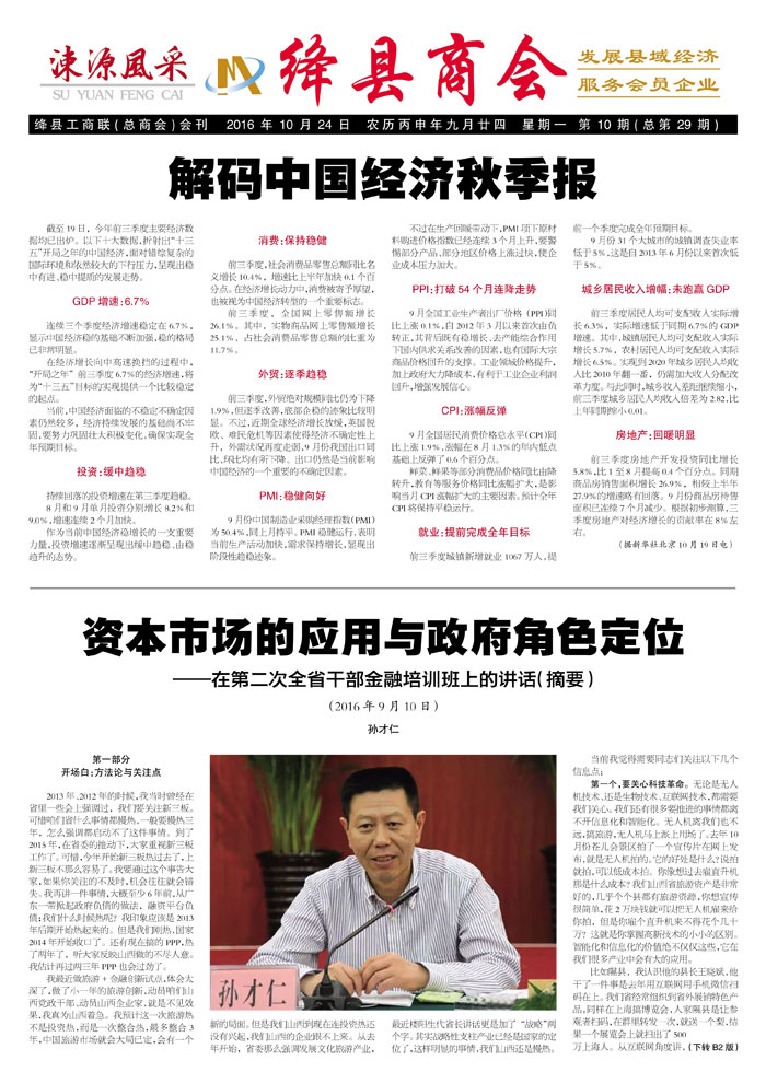 绛县工商联(总商会)会刊 2016年10月24日 农历丙申年九月廿四 星期一 第10期(总第29期)