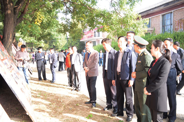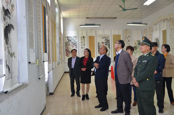 本报讯 10月19日,我县以“不忘初心,继续前进”为主题的纪念中国工农红军长征胜利80周年“三县书画联展”在县图书馆开展。县领导薛玉马、丁格、苏士杰、李服役、解伟龙、陈军、葛凯、薛俊辉等出席活动并观看书画作品展。