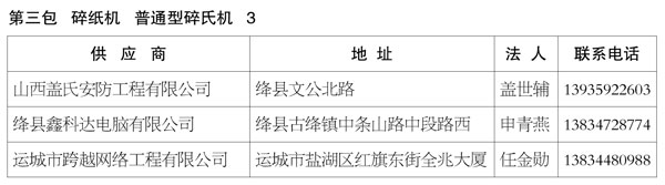 绛县政府采购定点供应商名单公示(二)