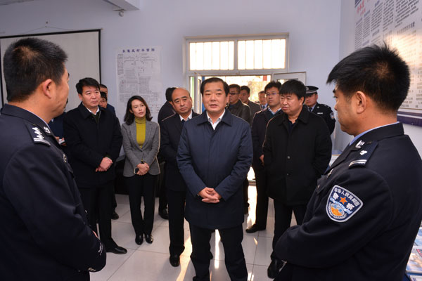 11月15日,市委常委、政法委书记邓雁平到我县调研政法综治工作和“三个一百”推进情况。县领导王宏伟、薛玉马、丁格、孙晓、解伟龙等陪同。