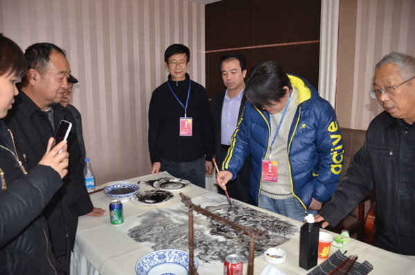 12月25日,北京南海书画院14位艺术家和我县书协、美协部分会员及广大书画艺术爱好者在波音大酒店欢聚一堂,互相学习交流。