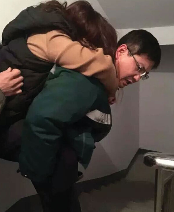 近日,一张照片疯狂在微信“朋友圈”里流传,众人纷纷转发,点赞好评如潮,运城“第一时间”栏目也对此事做了报道。照片里,一名身着绿色急诊制服的医生,把腰几乎弯成了90度,背着一个病人正在下楼梯,从医生的面部表情可以看出他走的有些吃力,脸都涨红了。