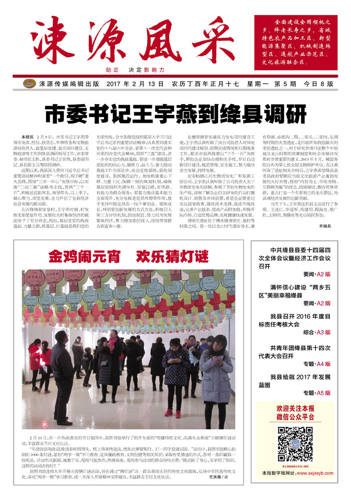 《涑源风采》贴近,决定影响力 涑源传媒编辑出版 微信:suyuanfengcai 邮箱:sxjxsyb@126.com 电话:6523423