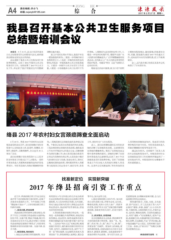 绛县2017年农村妇女宫颈癌筛查全面启动