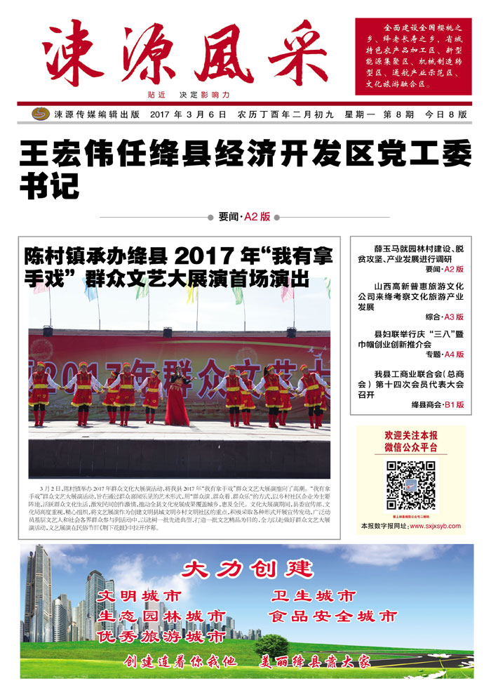 《涑源风采》贴近,决定影响力 涑源传媒编辑出版 微信:suyuanfengcai 邮箱:sxjxsyb@126.com 电话:6523423