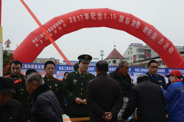 本报社 3月15日,县工商和质量监督管理局、县消费者协会等多家单位在电影院广场开展了以"网络诚信 消费无忧"为主题的"3·15国际消费者权益日"纪念宣传活动。