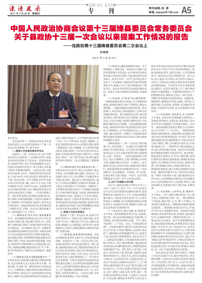 中国人民政治协商会议第十三届绛县委员会常务委员会关于县政协十三届一次会议以来提案工作情况的报告