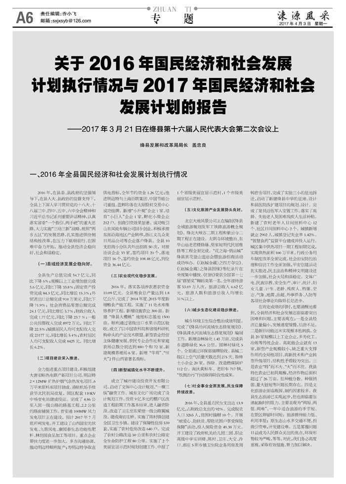 关于2016年国民经济和社会发展计划执行情况与2017年国民经济和社会发展计划的报告