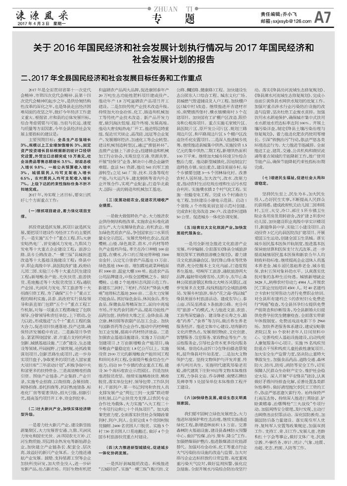 关于2016年国民经济和社会发展计划执行情况与2017年国民经济和社会发展计划的报告