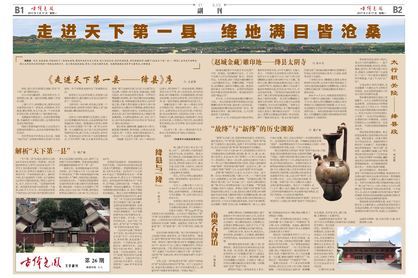 鉴往察来,撷锦知著,编纂这本小册子,就是要觅根溯源,彰奇昭胜,让绛县从此亮相显身,把一个真实、客观的绛县推给世人,还绛县一个人文荟萃、底蕴厚重的形象。