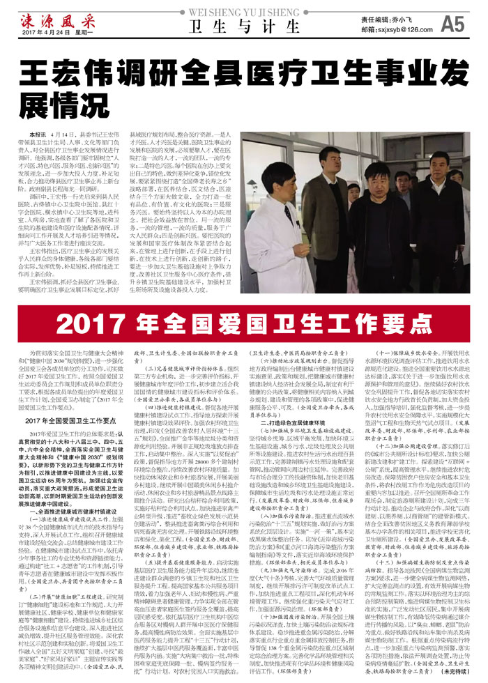 2017年全国爱国卫生工作要点