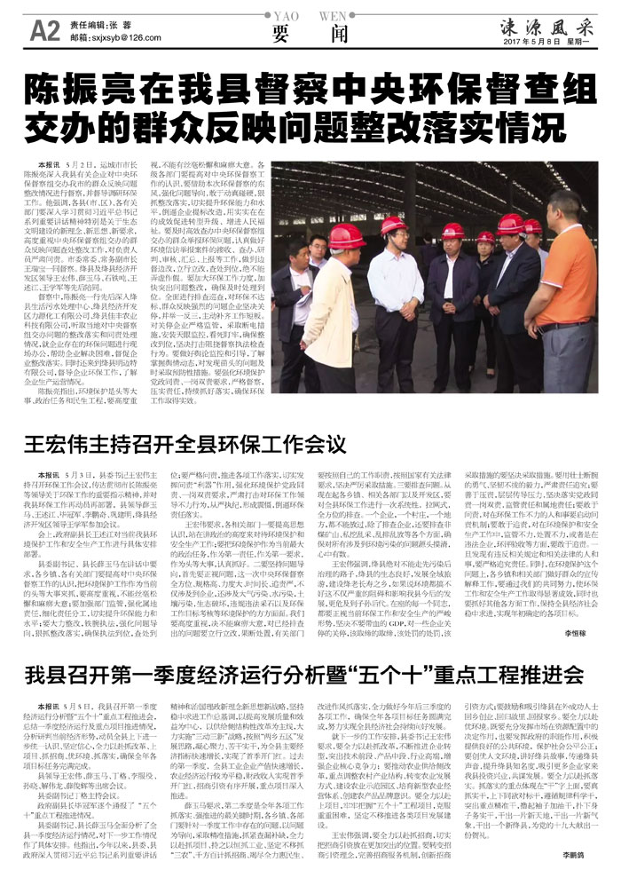 陈振亮在我县督察中央环保督查组交办的群众反映问题整改落实情况