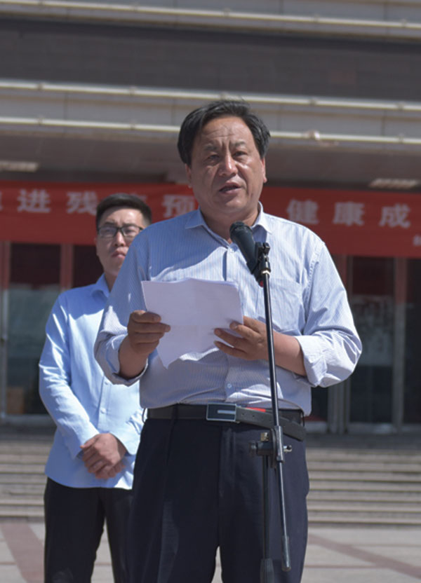 政府副县长王述江在辅具发放仪式上讲话