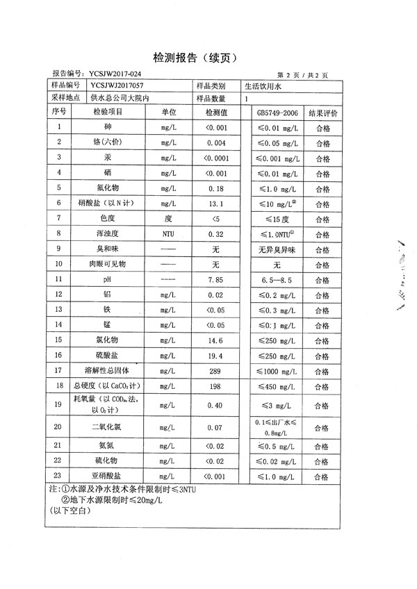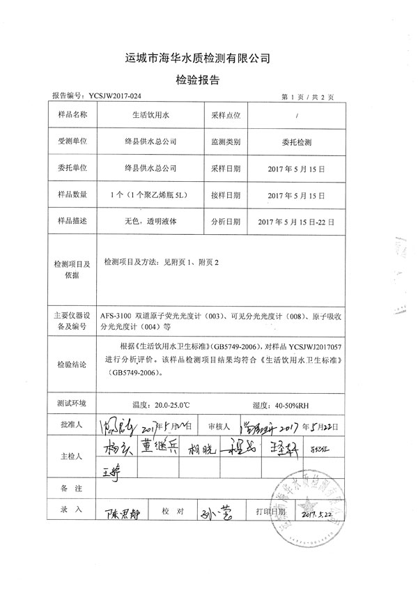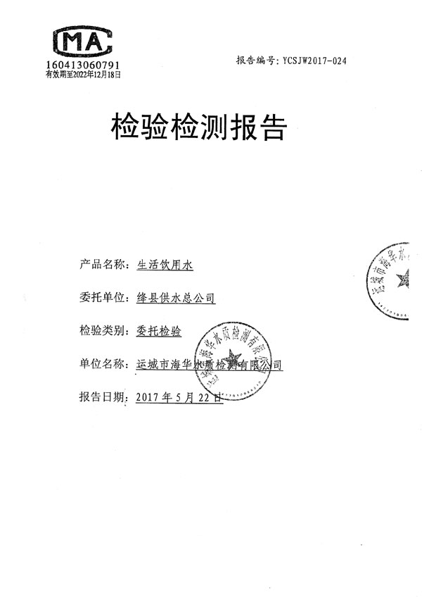 绛县生活饮用水检测检验报告