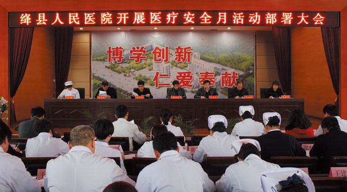 3月3日,我院在多功能厅召开了开展医疗安全月活动部署大会,全院干部职工280余人参加了会议。会议由副院长王克志主持,王院长传达了《医疗安全专项整顿活动方案》,并就活动的重点内容进行了介绍,整顿活动重点内容包括:全院医疗管理实行院、科两级责任制;科室自查安全隐患与处置工作;加强对重点科室、重点部门和重点操作管理;医疗安全培训。