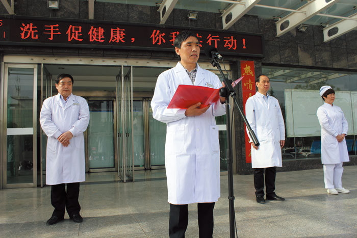 5月4日,我院开展了以“洗手促健康,你我共行动”为主题的系列宣传活动。院长樊柳龙作了动员讲话,感染科主任张新爱现场指导了在场的医生、护士、保洁、保安、行政后勤人员及患者正确进行“六步洗手法”,并对院感知识做了宣传。在场的医务人员和患者纷纷表示:从我做起,从手做起,关爱生命,“手”护健康。