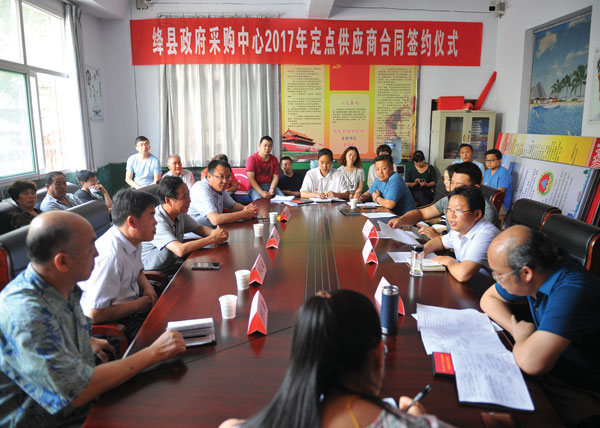 本报讯 为扎实做好政府采购工作,构建良好政府采购市场秩序,推进"阳光采购",近日,县政府采购中心组织政府采购社会监督员、全县定点供应商及采购中心工作人员共计50余人开展"规范采购程序,争创一流业绩"解放思想大讨论大走访大征集主题党日活动暨2017年定点供应商合同签约仪式。