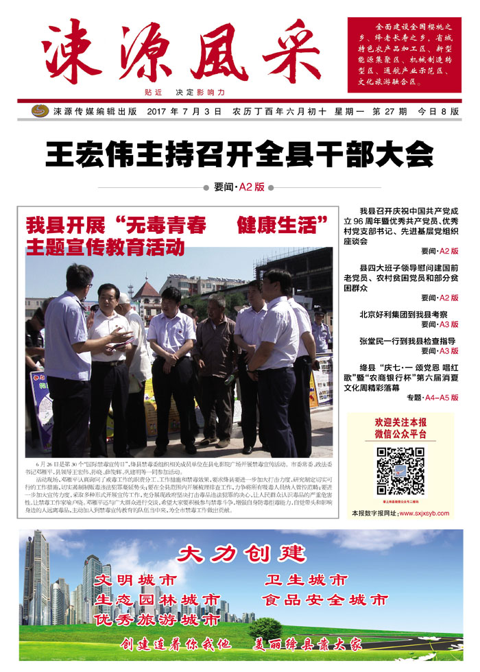 《涑源风采》贴近,决定影响力 涑源传媒编辑出版 微信:suyuanfengcai 邮箱:sxjxsyb@126.com 电话:6523423