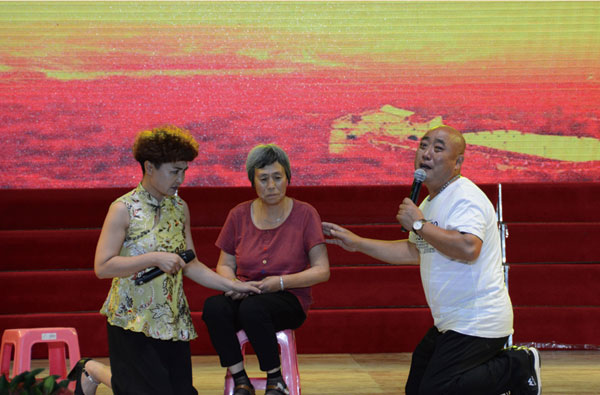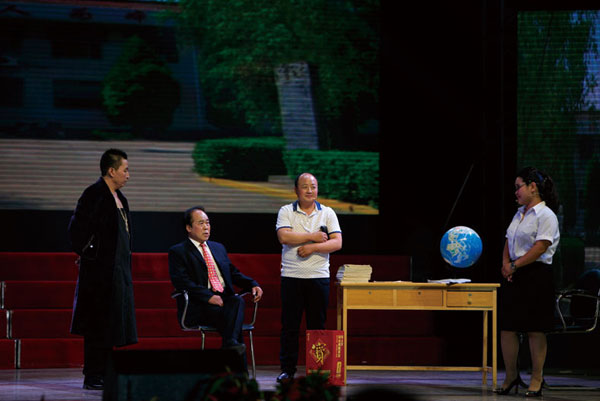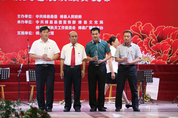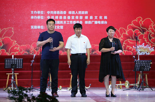 县委副书记丁格、县政协主席李服役为获得本届消夏文化周优秀节目奖演职人员颁奖