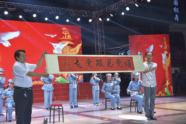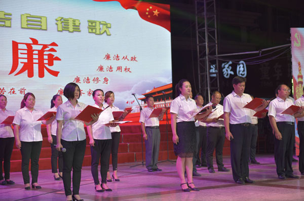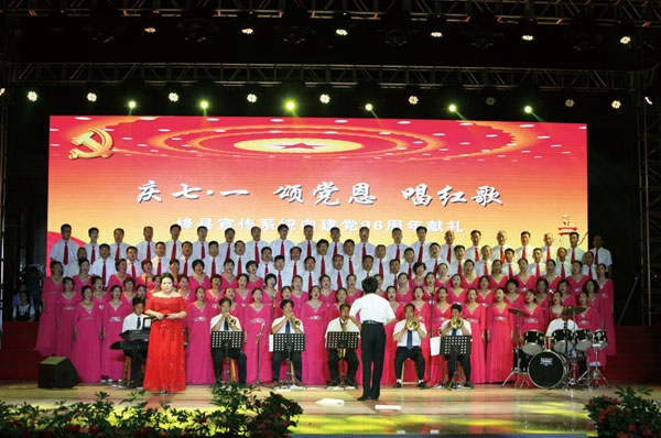 县领导王宏伟、薛玉马、丁格、李服役、孙晓、解伟龙、陈军、董宏运、薛俊辉等四大班子领导出席活动并以普通党员的身份参加了所在系统的大合唱。