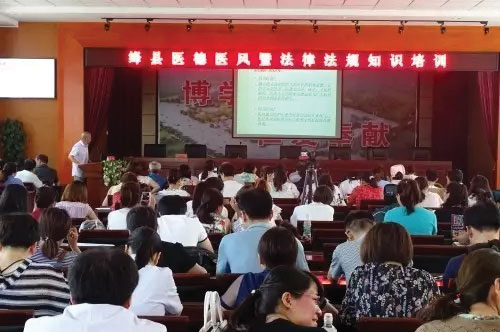 本报讯 医德医风暨法律法规知识这个话题应该是一个老话题了。他是随着医疗职业的产生而产生的,也随着医疗事业的发展而不断的发展。而且,社会越是在发展,越是在进步,人们的健康意识越是在提高,医德医风和法律法规越是受到社会各界的广泛关注,就越要加强。为了普及卫生技术人员法律法规知识,加强医护人员医德医风建设。6月28日,绛县卫校根据卫计局安排,在县人民医院多功能报告厅召开了医德医风暨法律法规知识工作培训会。会议由卫校校长任勇良主持。