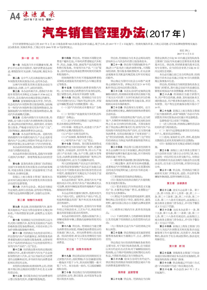 汽车销售管理办法(2017年)