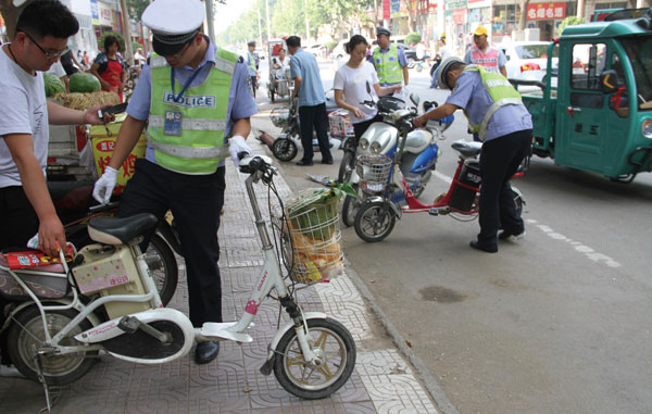 本报讯 为深入推进城市、公路交通违法“两项整治”行动和“三个不发生”创建活动,8月17日,县公安局交警大队在城区对街道禁止停放区域的非机动车辆进行集中整治,全力保障城市道路交通安全、畅通、有序。