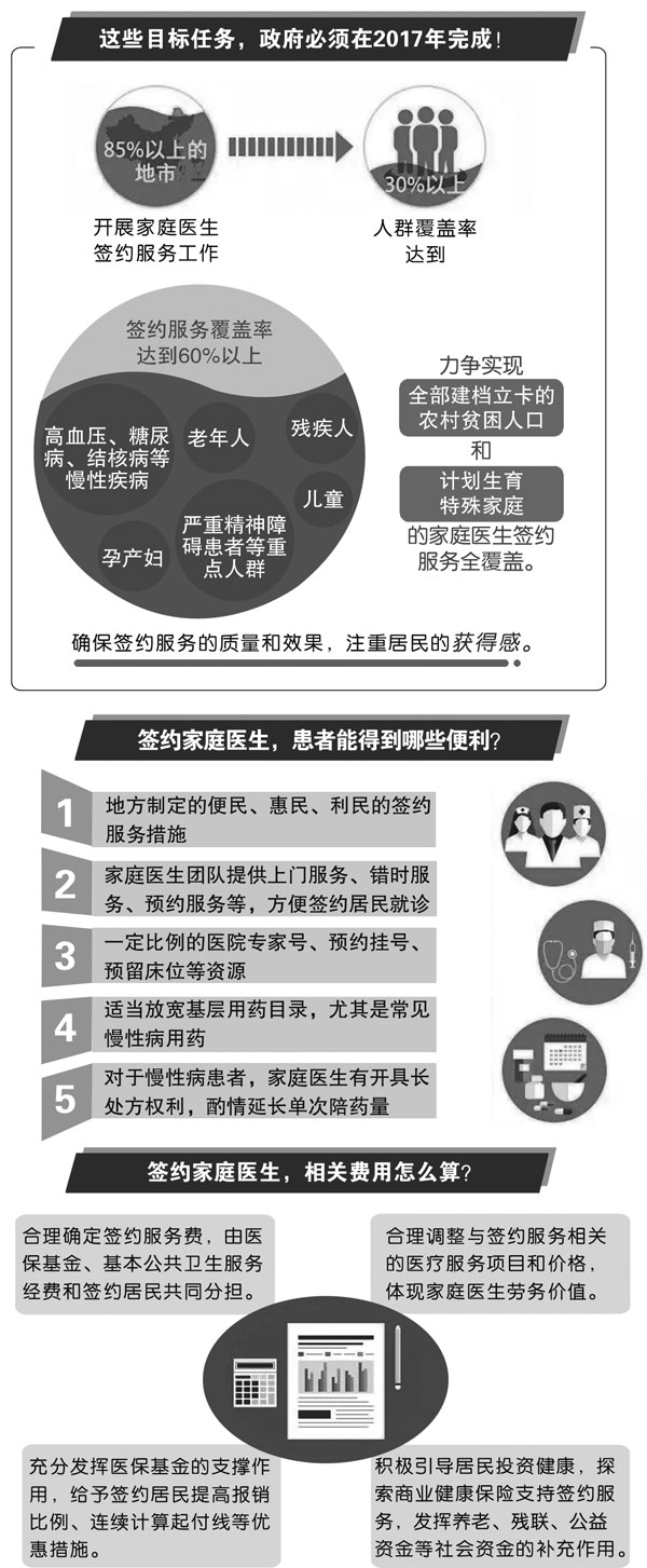 “家庭医生签约服务”是总理关注的一项工作。3月5日总理作2017年政府工作报告时指出,今年“分级诊疗试点和家庭医生签约服务扩大到85%以上地市”。4月12日国务院常务会议进一步提出,“以需求为导向做实家庭医生签约服务”。近日,国家卫生计生委发布通知,要求做实做好2017年家庭医生签约服务工作。总理关注的这项工作哪些人会受益?他们能获得怎样的服务?你我都关心的费用又如何?