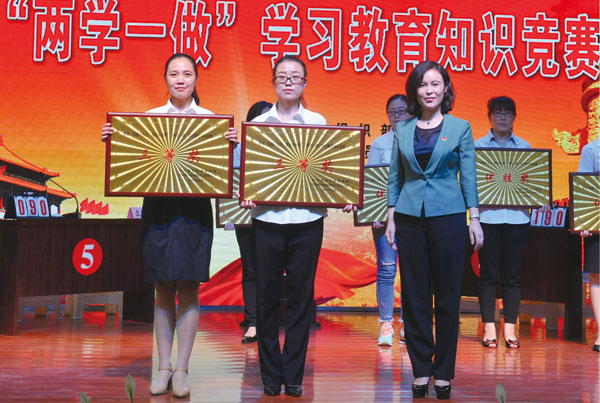决赛分为个人必答题、抢答题和风险题三个环节,内容涵盖党章党规,习近平同志系列重要讲话精神,市委、县委重大决策部署等。各队选手信心十足,充分展示了党员干部的精神风貌。在个人必答题中,各队选手答题不急不缓,从容不迫,分数不分伯仲;在紧张的抢答题环节,各队选手耳聪手快,听得准、按得快,随着抢答题结束,各队分数也随之发生了变化;在风险题选择上,各队更是信心十足,把握住最后的机会,纷纷选择不同分值的题目,经过紧张激烈的角逐,政法口代表队发挥出色,荣获一等奖。决赛过程中还安排了观众现场互动抢答环节,极大的调动了大家共同参与的积极性。