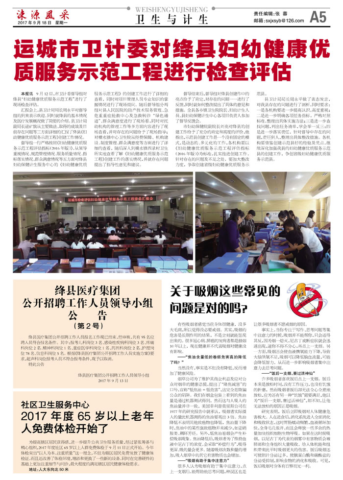 运城市卫计委对绛县妇幼健康优质服务示范工程进行检查评估