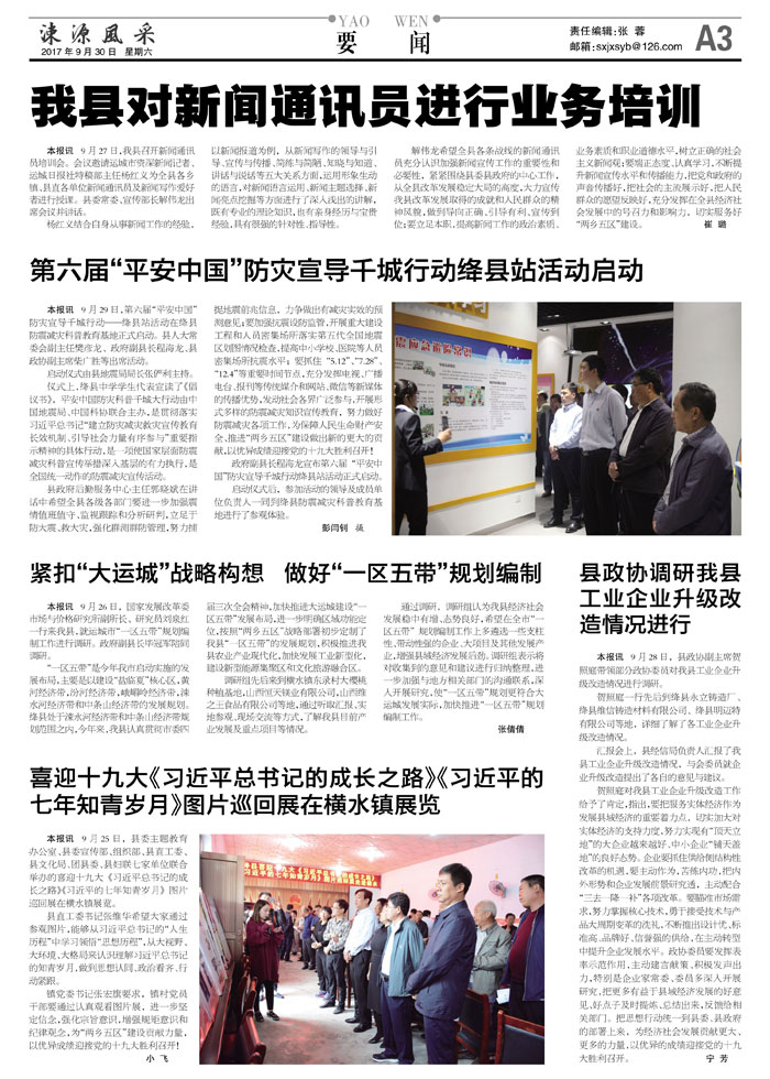 本报讯 9月25日,县委主题教育办公室、县委宣传部、组织部、县直工委、县文化局、团县委、县妇联七家单位联合举办的喜迎十九大《习近平总书记的成长之路》《习近平的七年知青岁月》图片巡回展在横水镇展览。