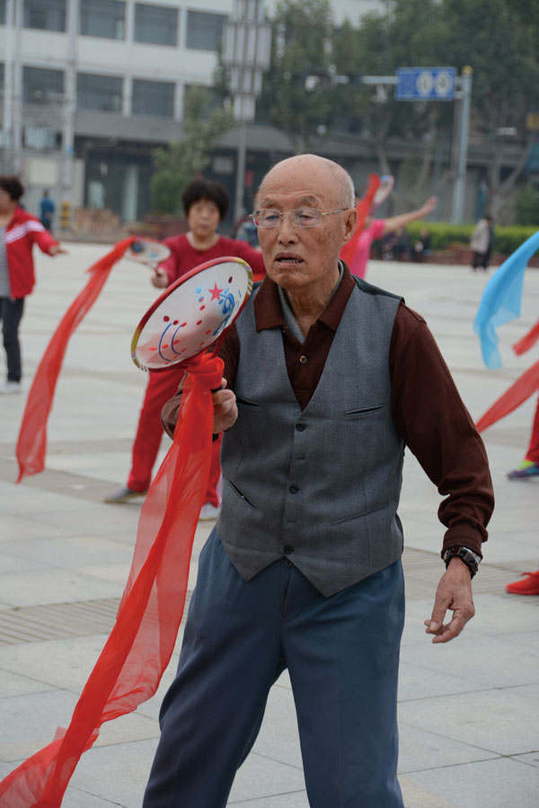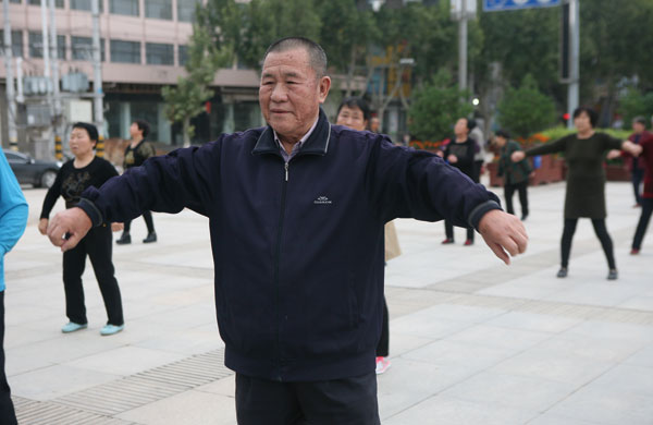 81岁的退休老局长张占彪提起多年参加锻炼的好处,津津乐道,80多岁的他走在大街上,大家都说他也就是60多岁。老人家打趣的说,"老年强,国家强,身体健康不生病,少住院,减开支,不给子女找麻烦。"退休后的张占彪加入了广场晨练大军,每天早上坚持锻炼,一年365天,除了下雨下雪外,从不间断。广场舞、柔力球、太极拳参与项目多了,从中间不断地发现不同的乐趣,锻炼之余和大家聊聊天、谈谈心,思维活跃了,心情也好了。