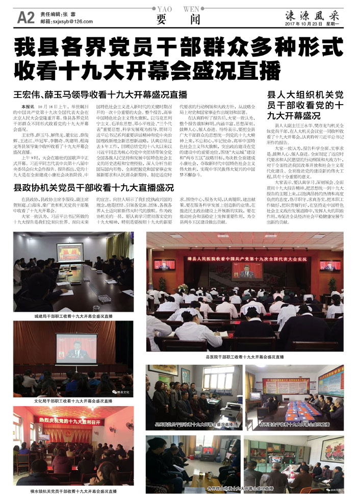我县各界党员干部群众多种形式收看十九大开幕会盛况直播