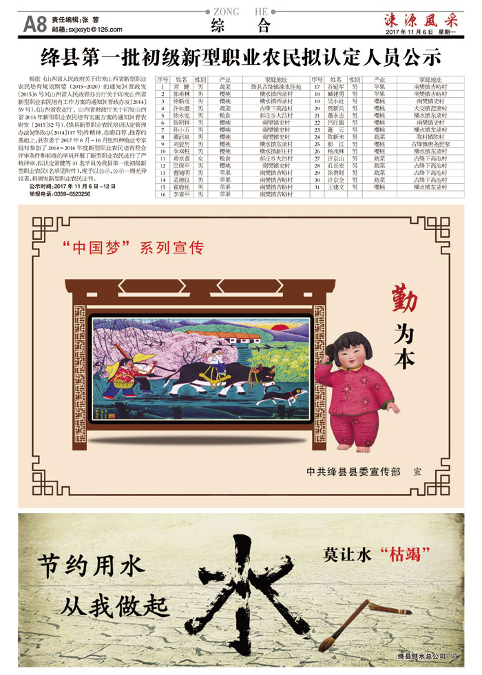 《涑源风采》贴近,决定影响力 涑源传媒编辑出版 微信:suyuanfengcai 邮箱:sxjxsyb@126.com 电话:6523423