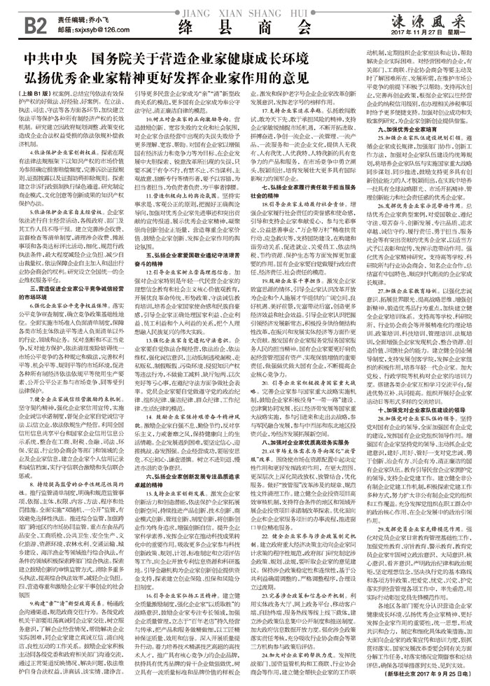 中共中央 国务院关于营造企业家健康成长环境 弘扬优秀企业家精神更好发挥企业家作用的意见