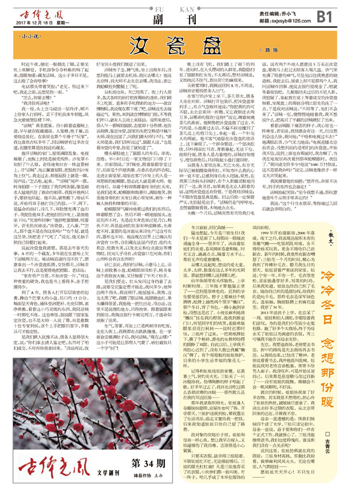 推开活贼的家门,屋里满眼乱象。电视被砸了,地板上到处是破壳残件。沙发罩不知犯了什么错,奇怪地耷拉在一株盆景树上。寻“活贼”,他正撅着屁股,把脸捂到沙发角上怄气。我走过去,照他屁股上就是一脚,厉声说:“怎么啦,起来。”“活贼”闻声一震,转身抬眼一下子抱住了我的两条腿,像是溺水人猛地抓住了救命的稻草。我拨开他两只手,要扶他站起。他不站,就势跪下,啥话不说,开始用双手抽打自己的脸,一下,两下,是猛命的抽打,没几下,双脸便充满了血印子。我捉住他双手,把他拉回沙发上,紧挨他坐下问:“究竟咋回事?”他挤吧着眼睛,咬着牙,语无伦次地说:“汝瓷盘,王八蛋,”“怎么,那个盘不是在你这里吗?”“在个屁,就是这怂货,快把老子气死了,”说完,他又抽手照自己脸腮打起来。