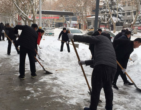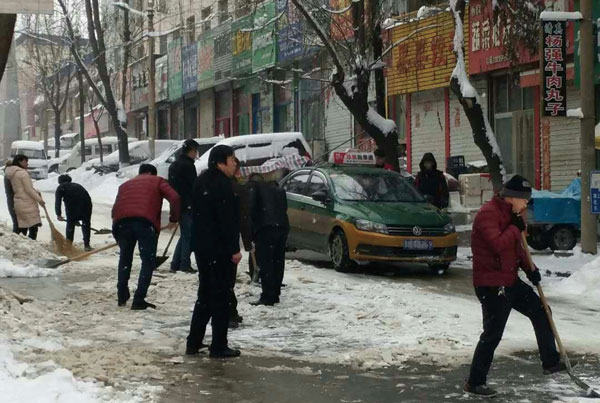全县干部职工铲冰除雪确保道路畅通