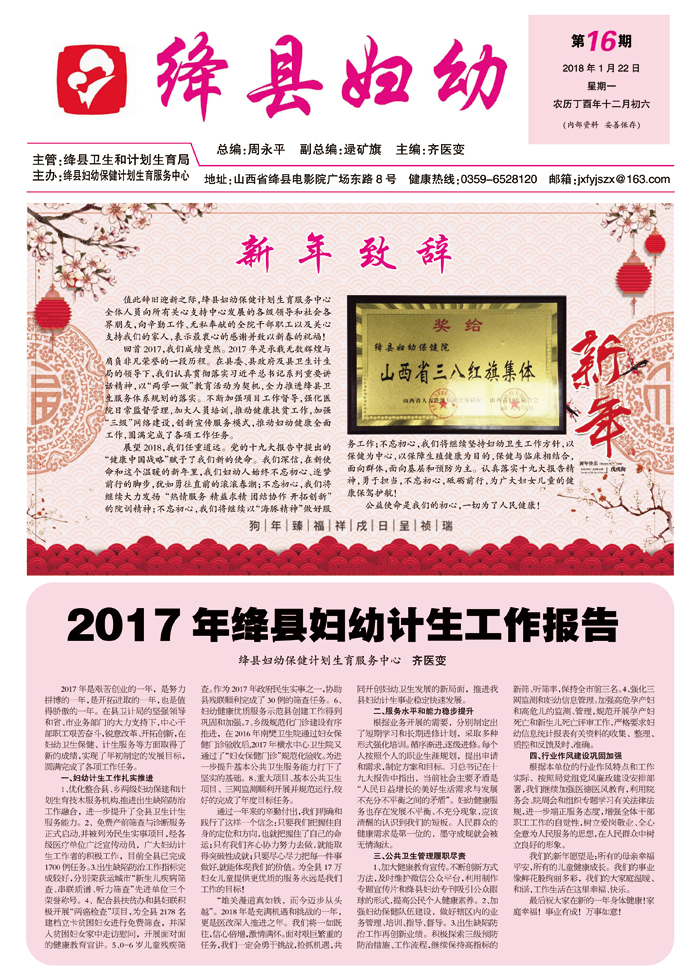 2018年1月22日 绛县妇幼 第16期 今日4版